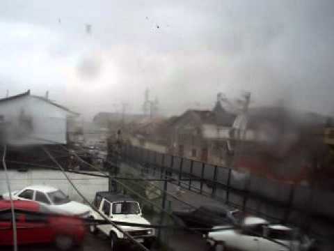 Además, durante la ocurrencia del fenómeno -cuya fase crítica duró cerca de dos minutos- cayeron sobre la ciudad enormes granizos, del porte de una pelota de golf, y se produjeron truenos y relámpagos.